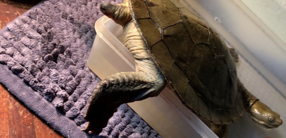 Sue’s home turtle Toby has a habit of pausing before he finally slides into the feeding station. Itโs a fitting metaphor for our Storytellers publicity pace, by the time we get moving, the event is already upon us!